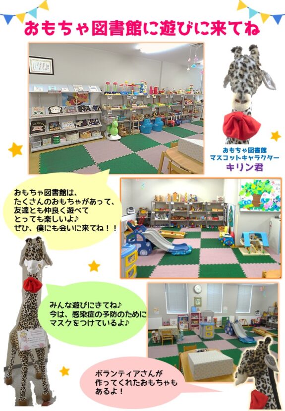 子どもたちが、おうちの方や、ボランティアたちとともに、おもちゃで遊ぶ楽しさを知ってほしいと願っております。みなさん、さそい合わせてあそびに来てください。お待ちしています。